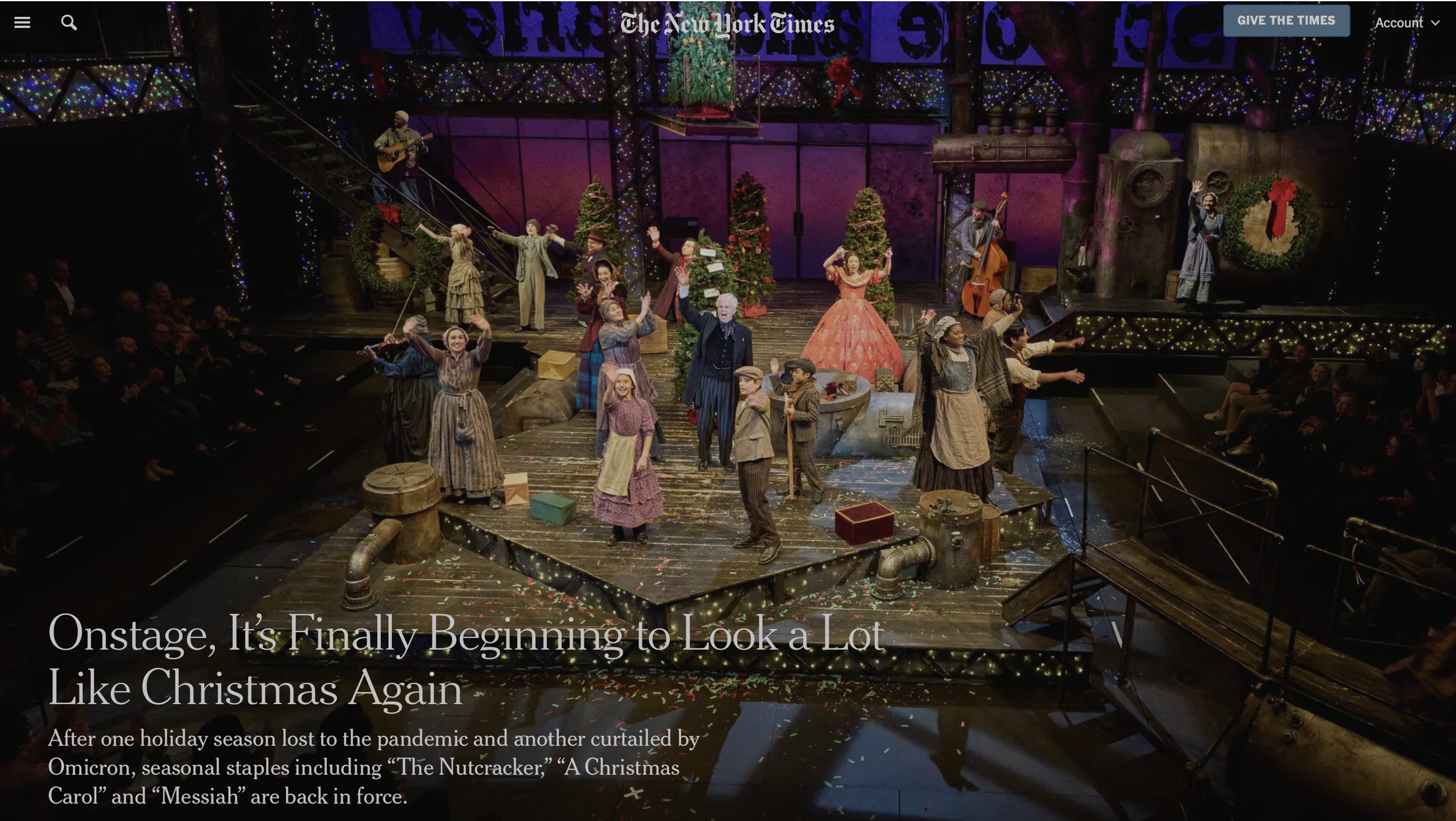 “Caroling, singing for joy, is the essence of the show, and there are a number of strong singers in the ensemble, including Zachry J. Willis, Cameron Cobb, Tiffany Solano, as a feisty Mrs. Cratchit, and Christina Austin Lopez, as Fred’s winsome fiancé. ”