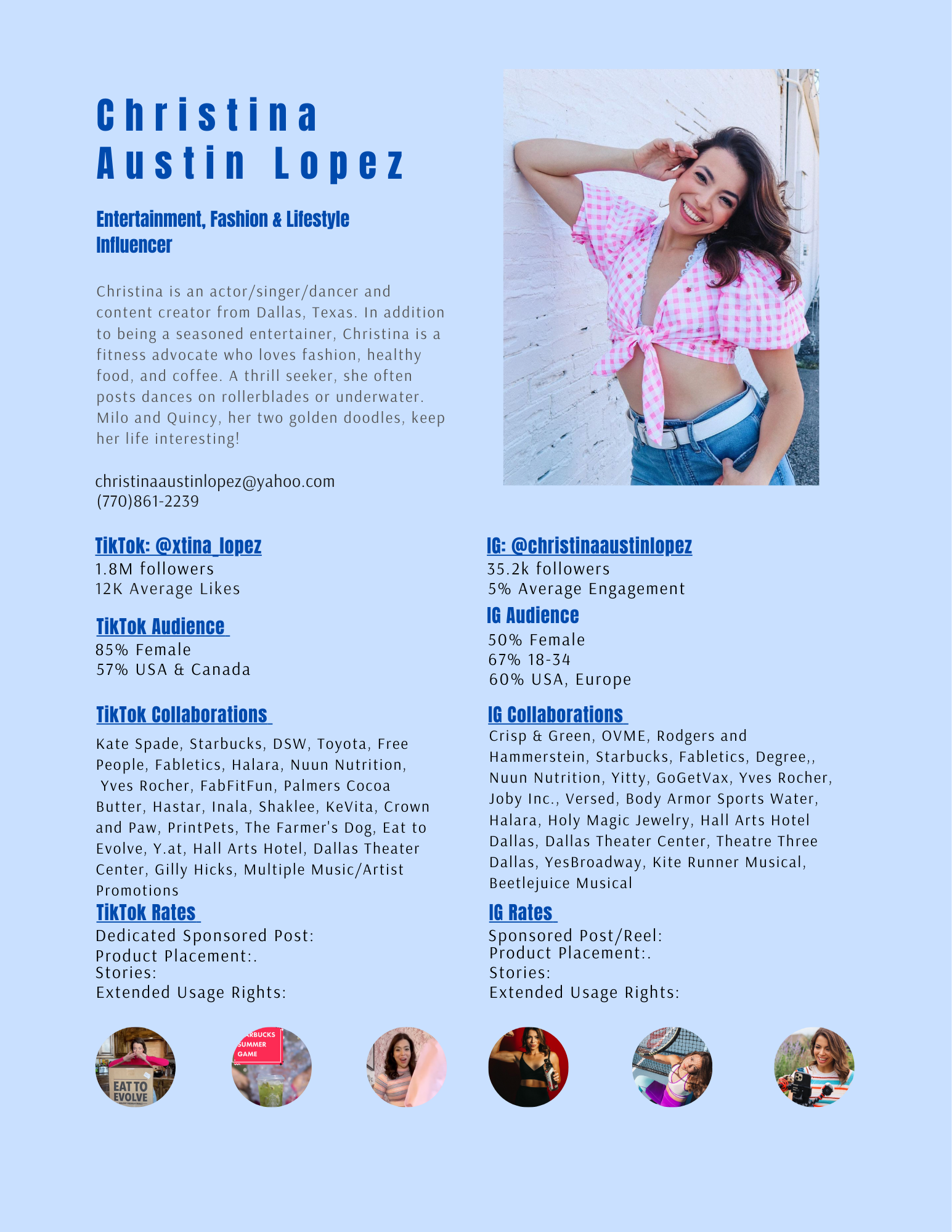 Christina has amassed over 1.9 Million followers across platforms. Profile Links below! TikTok YouTube Instagram Download Media Kit